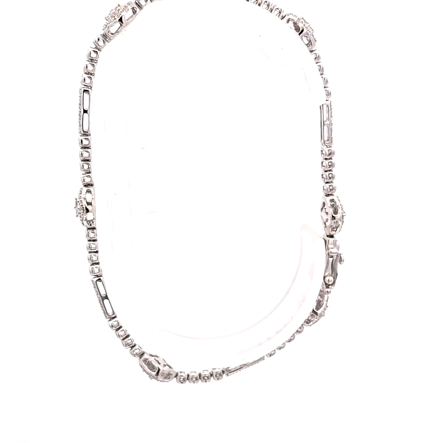 1.36 CTW Diamond Cluster Station Tennis Bracelet in 18k White Gold