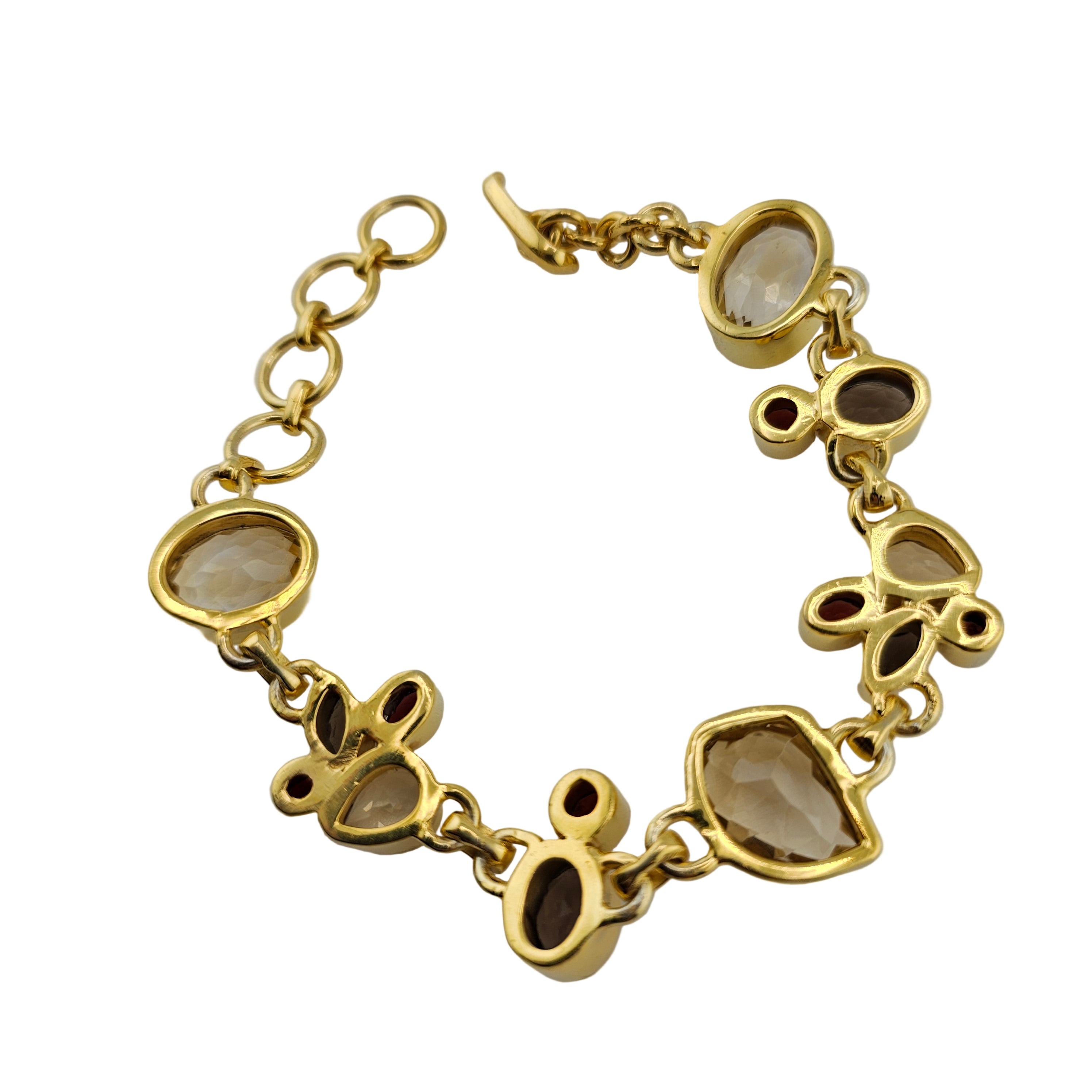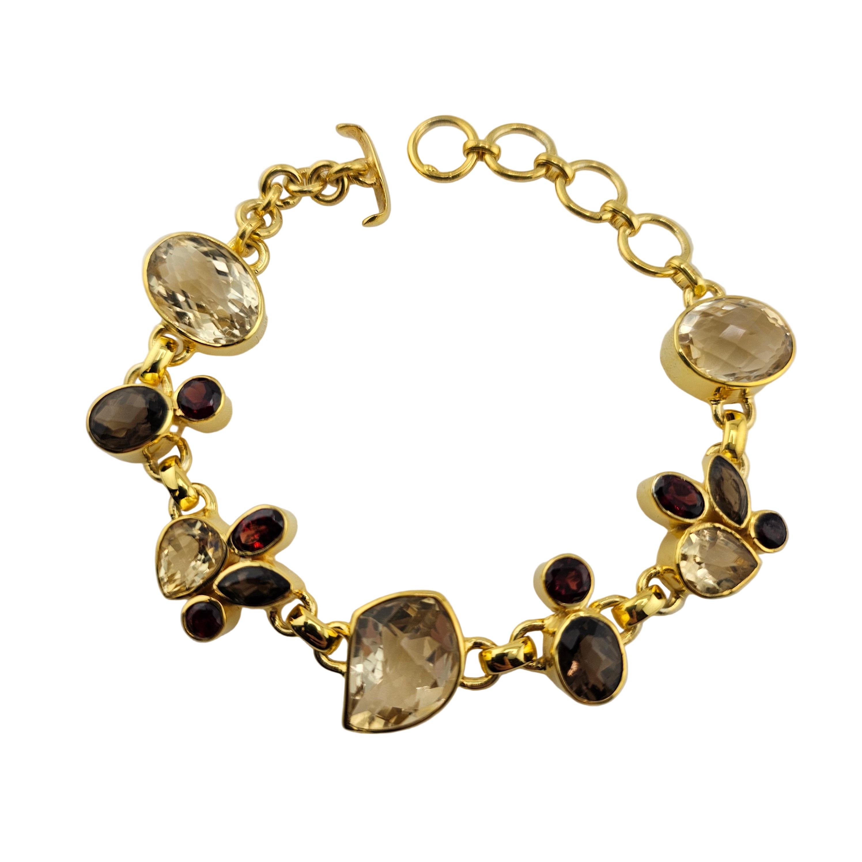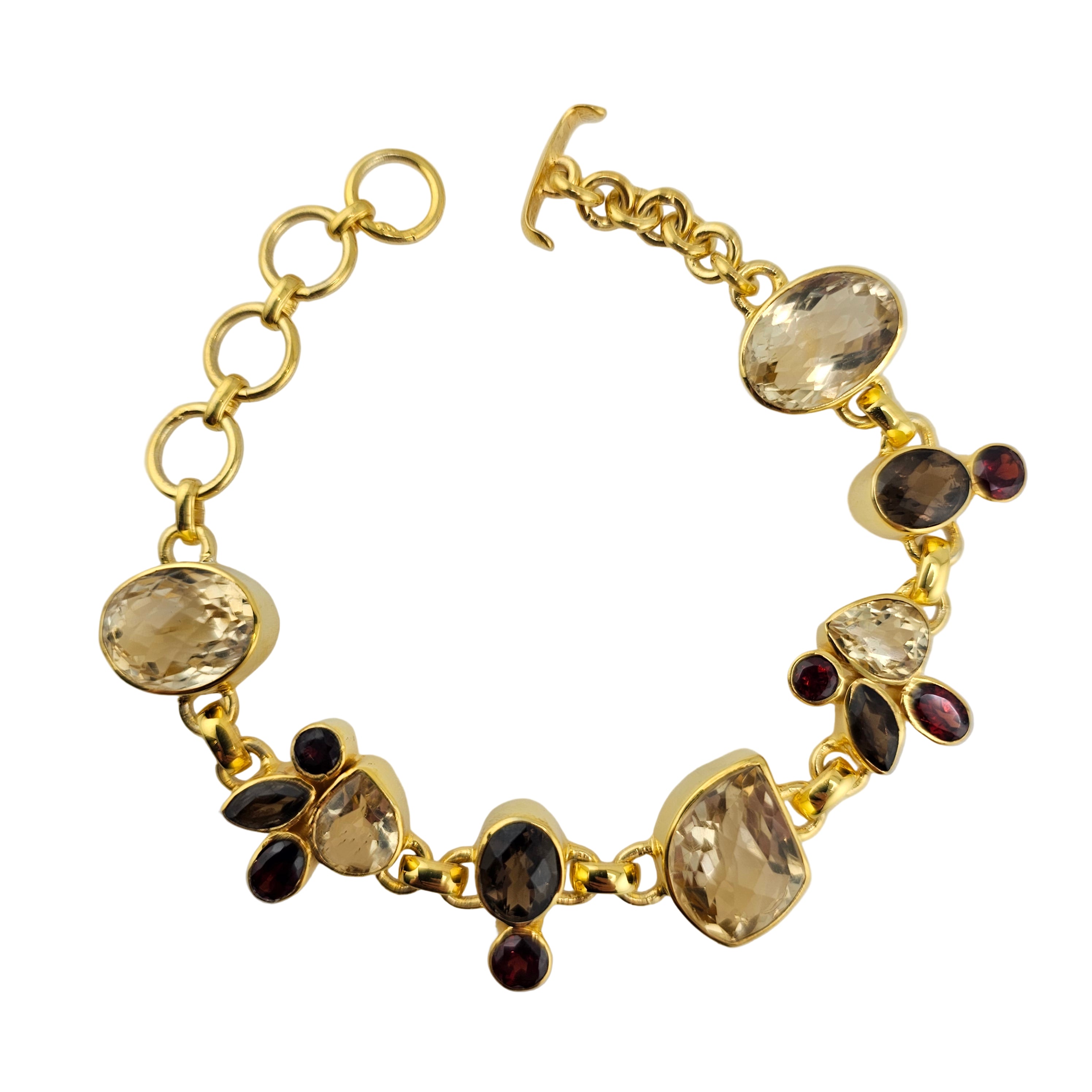 Sterling Silver Gold Vermeil Citrine Garnet Smoky Quartz Bracelet