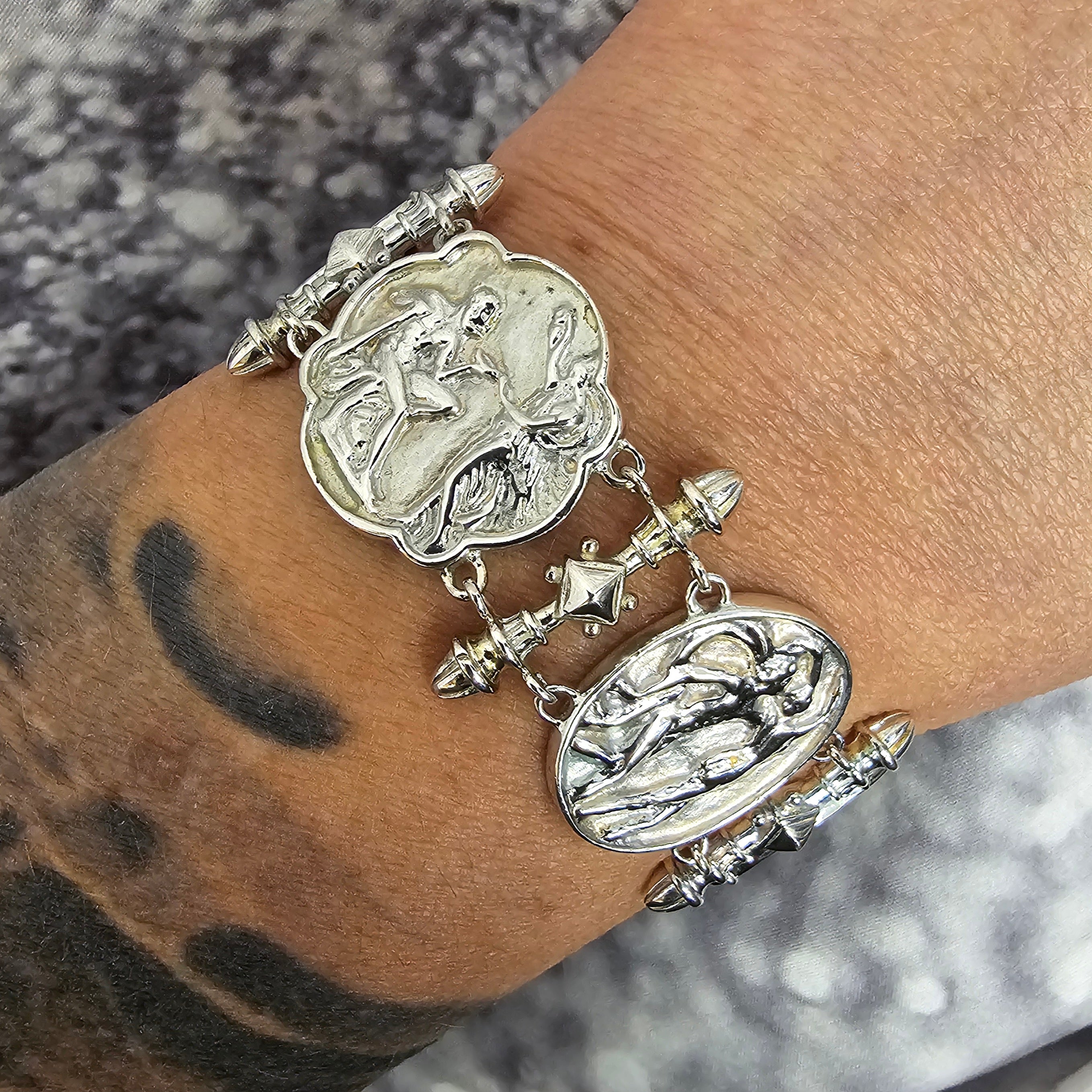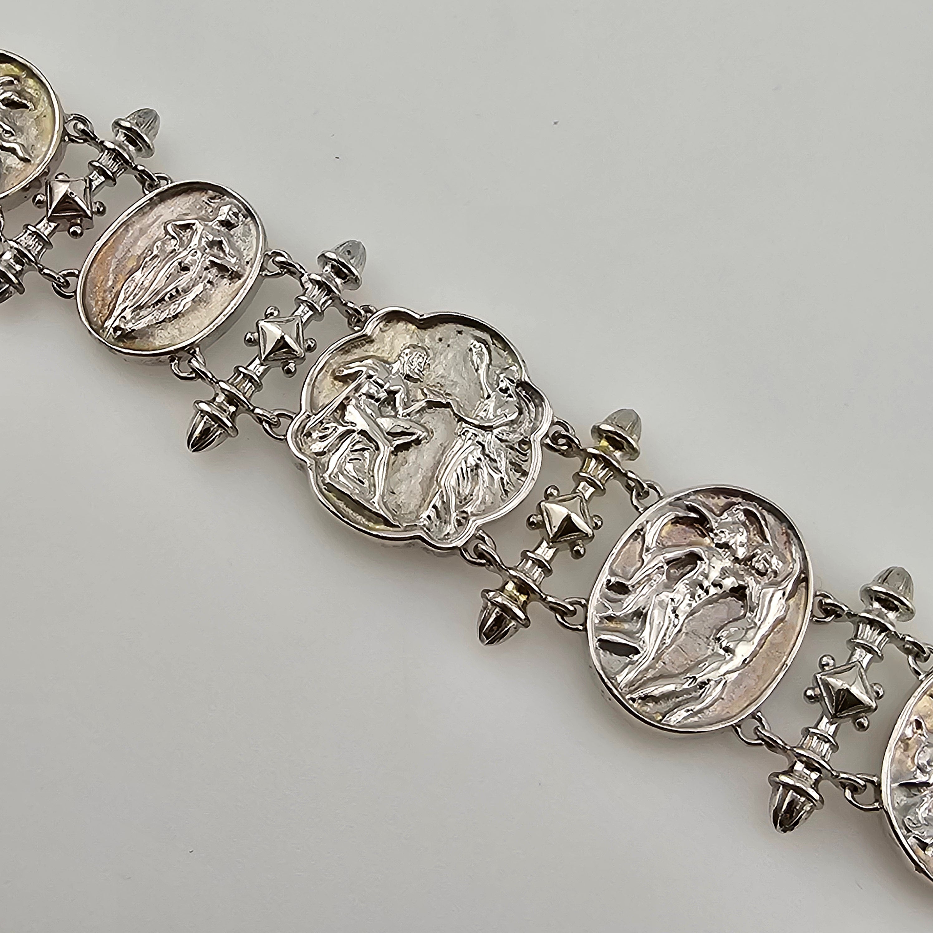 Sterling Silver Greek Scenic Relief Panel Bracelet