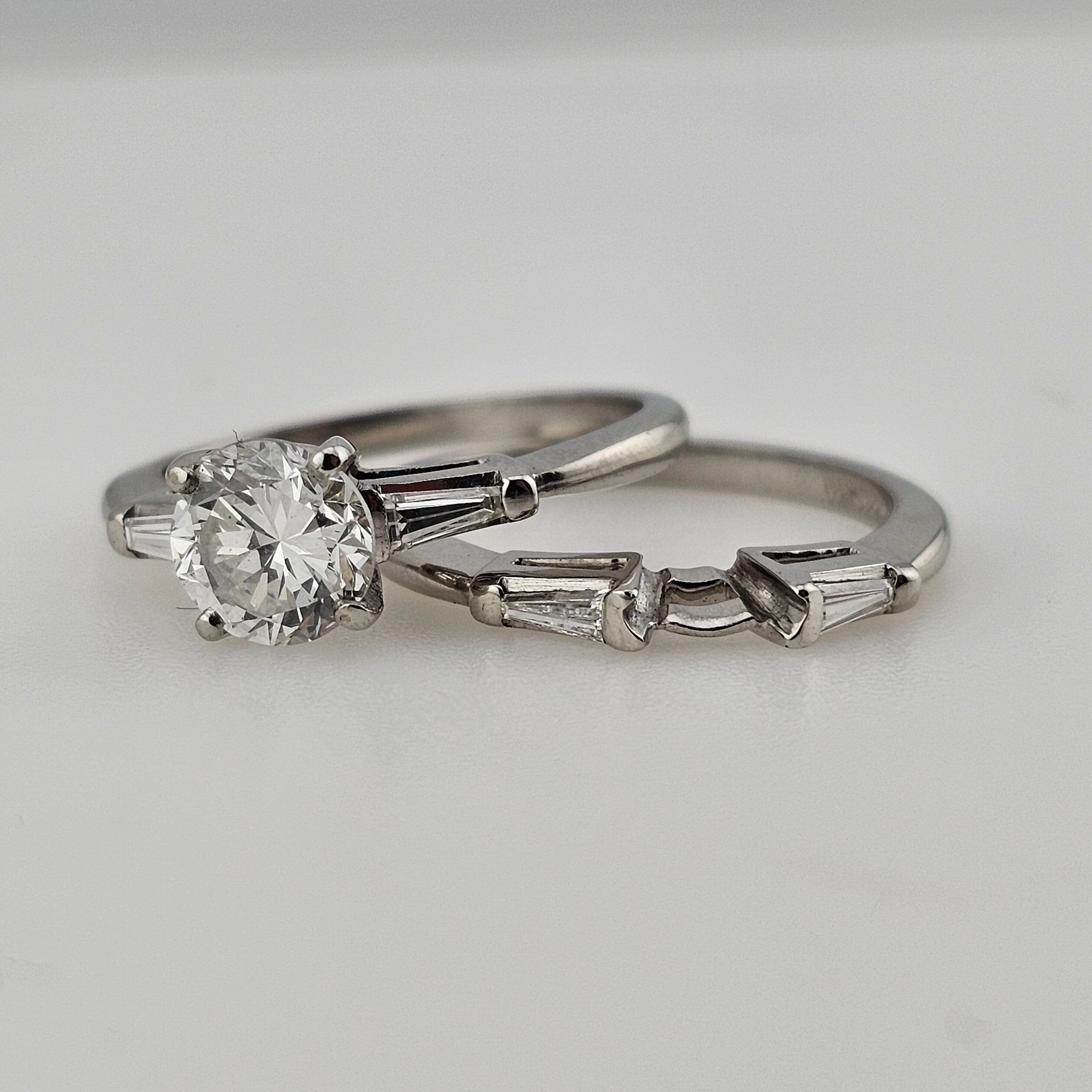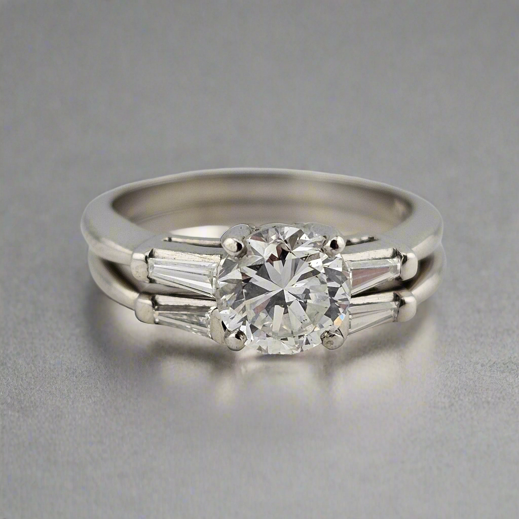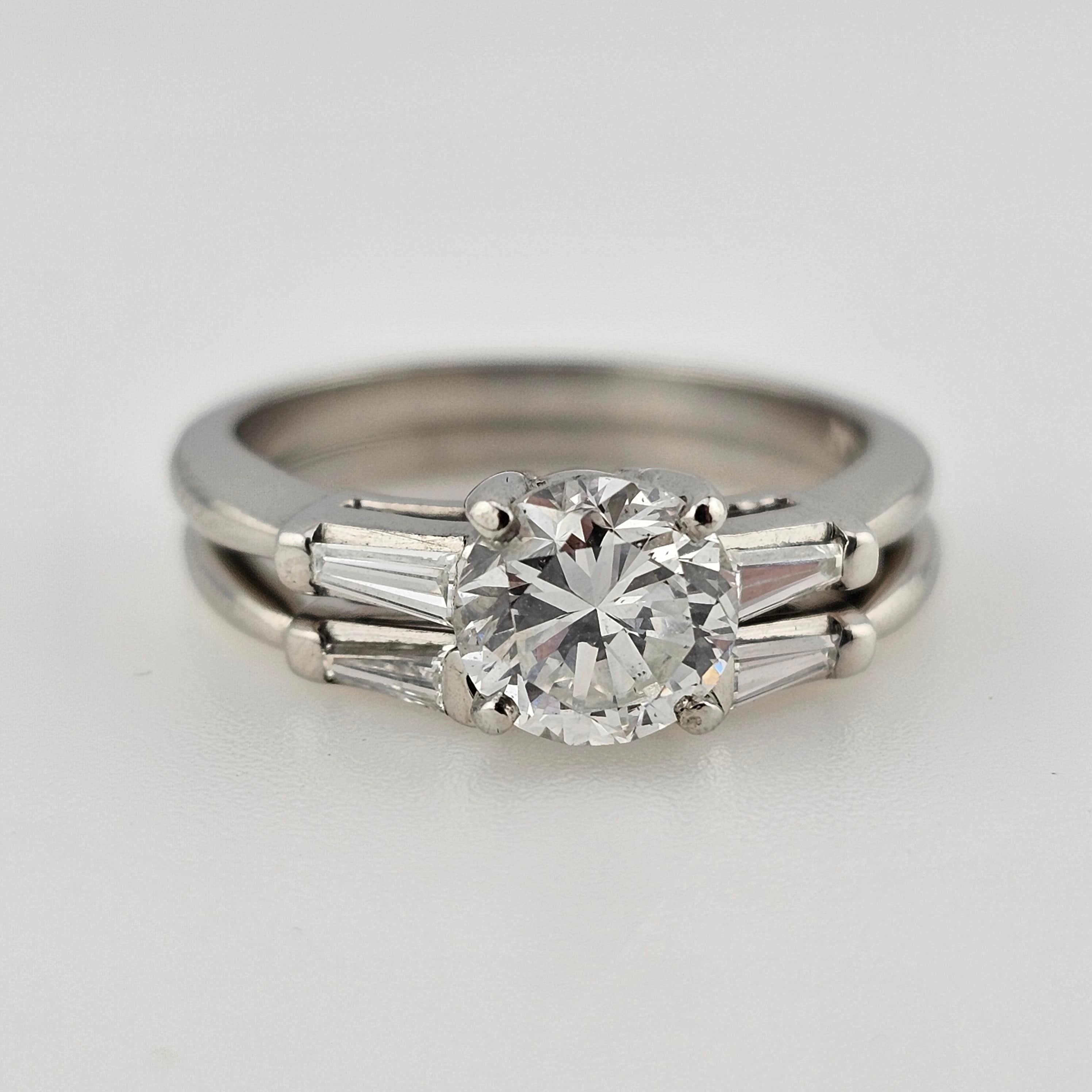 1.24 CTW Round Brilliant Cut Diamond Engagement Ring Set - Platinum - Size 6.5
