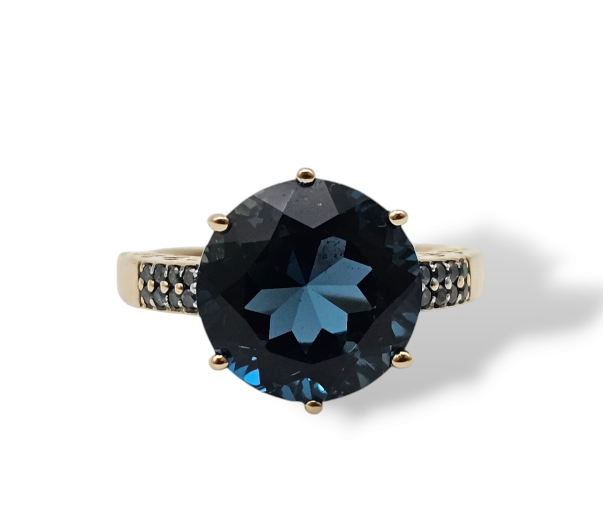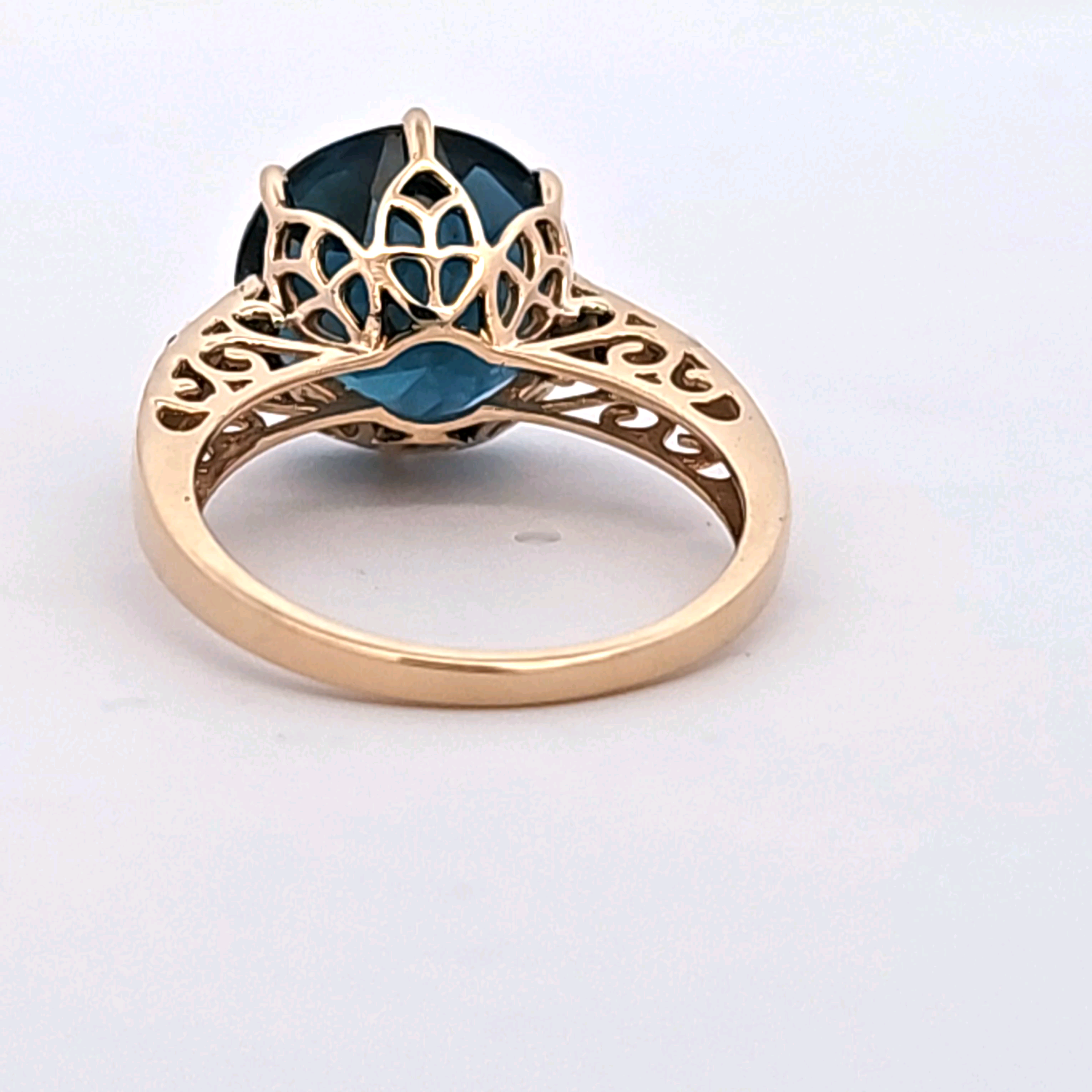 This stunning estate engagement ring is a true statement piece, combining the vibrant beauty of Blue Topaz with the timeless elegance of yellow gold.