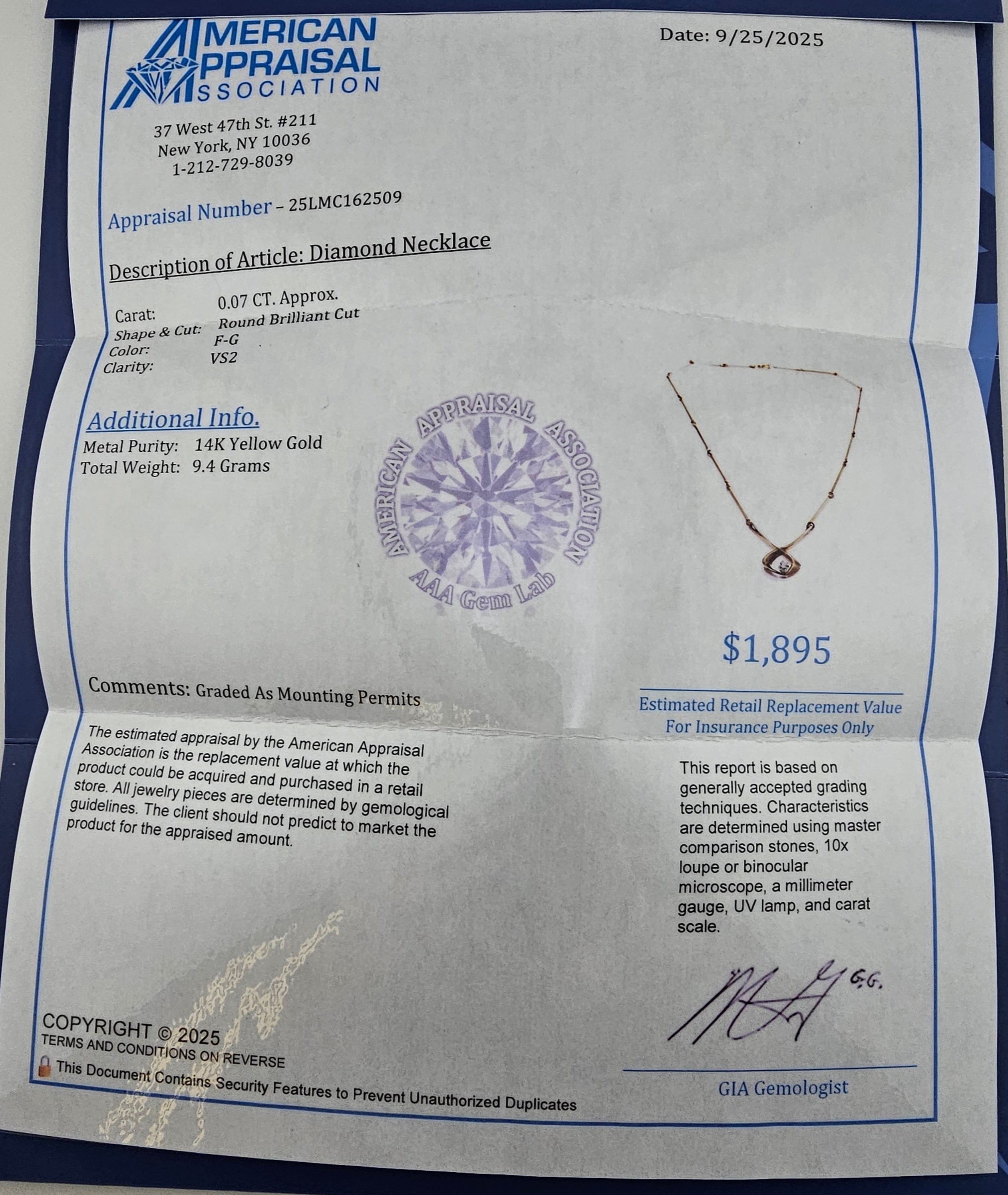 • Appraisal is included with this necklace
