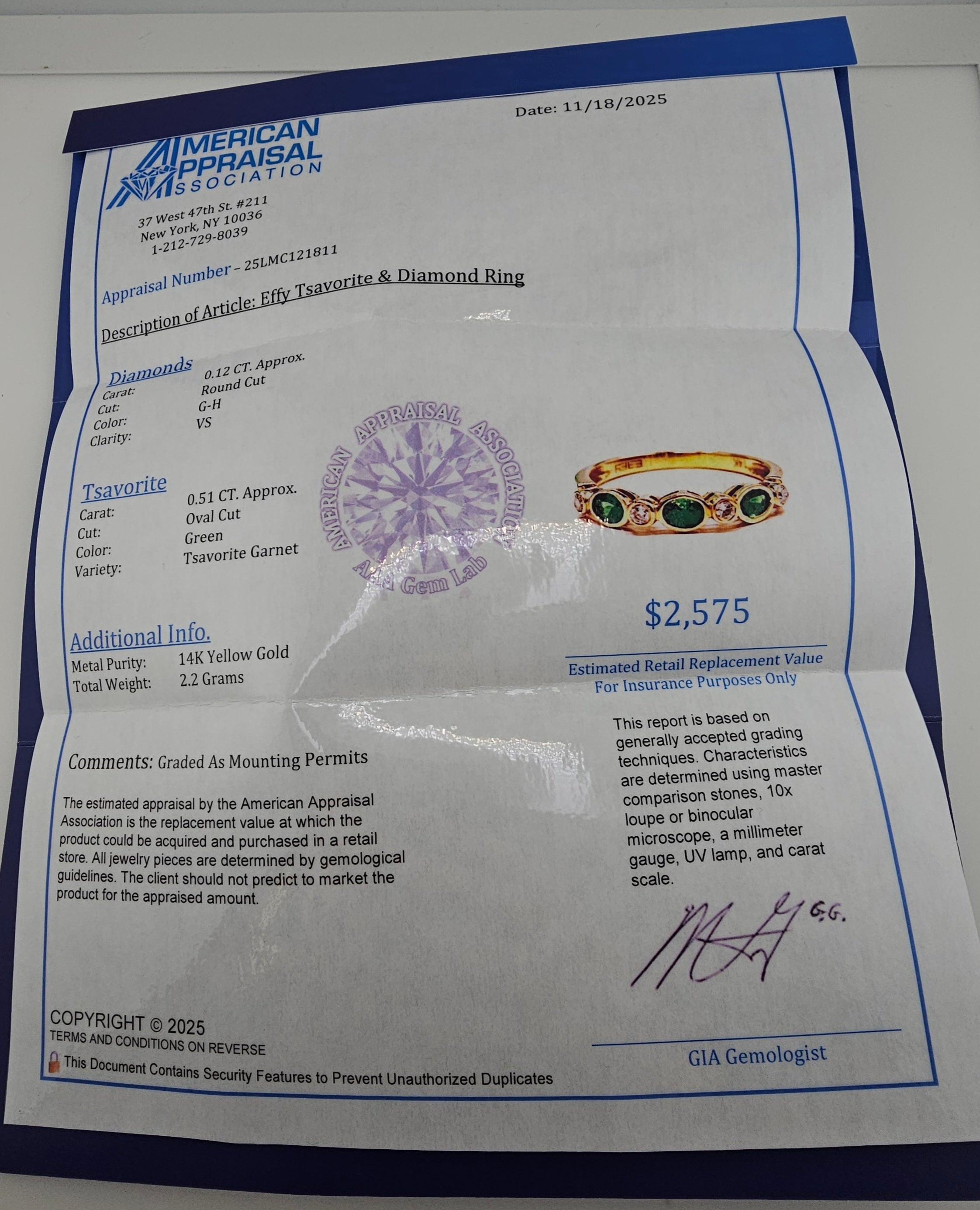 • Appraisal is included with this ring