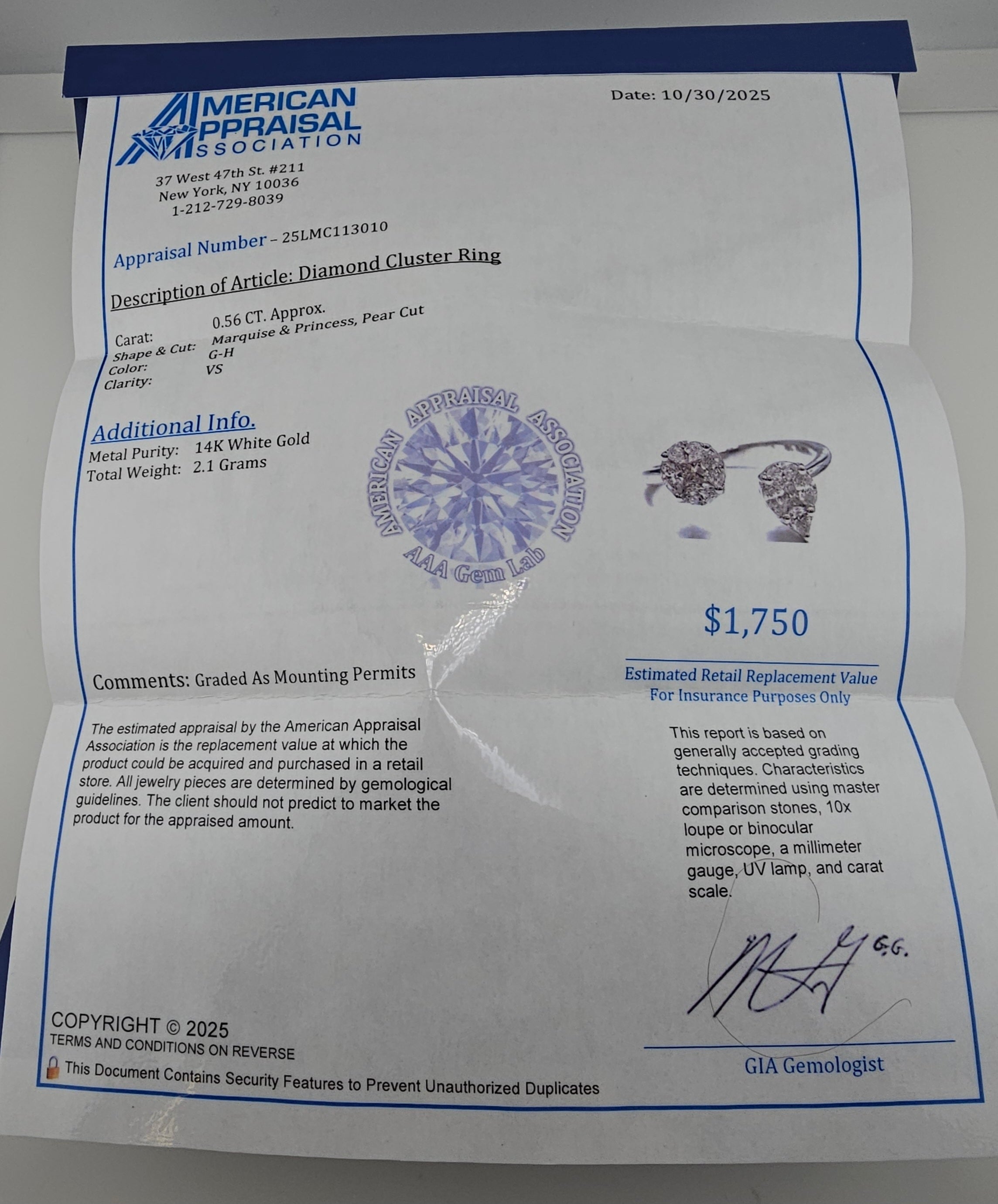 - 0.56 Carat Total Marquise, Princess, and Pear cut Natural Diamonds