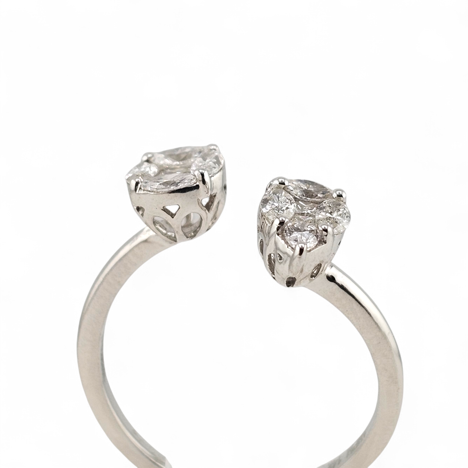 0.56 CTW Diamond Cluster Toi et Moi Ring 14k White Gold - Size 6.5