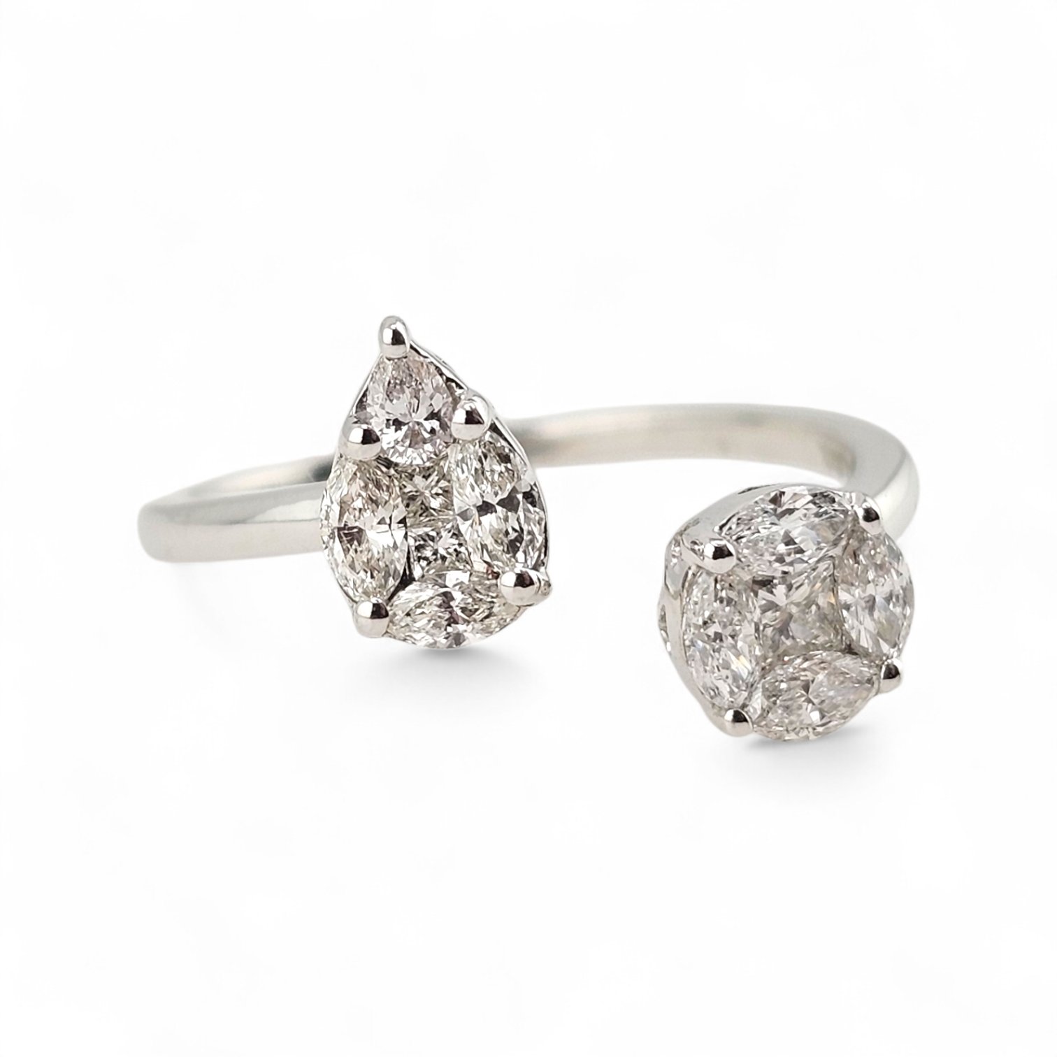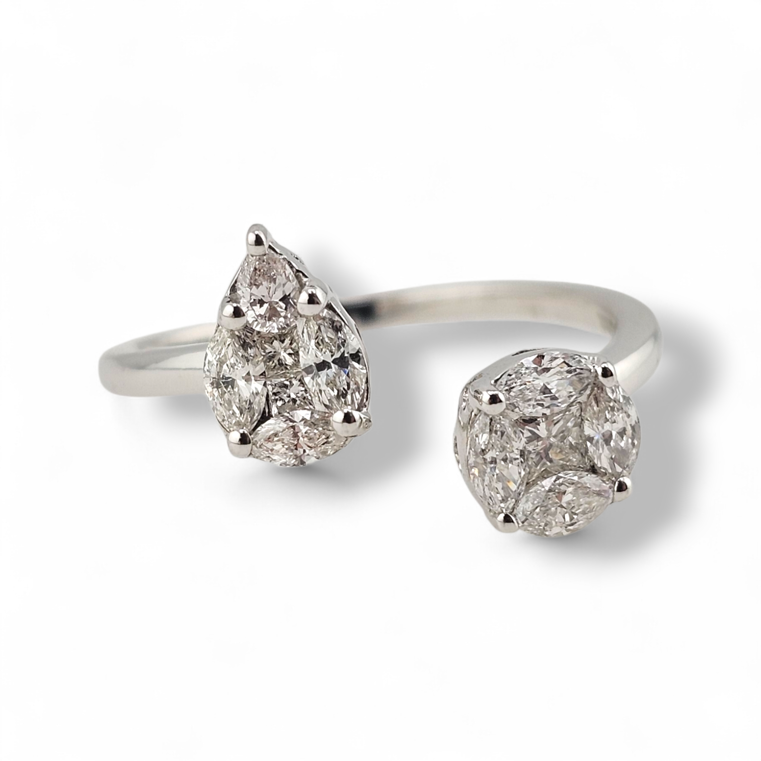 This enchanting Diamond Toi et Moi ring from the Westgate Jewelers Collection is truly magical. With a sparkling 0.56 CTW marquise, Pear, and princess cut diamonds in an elegant round and pear-shaped clusters, it effortlessly exudes elegance and charm. Perfect for adding a touch of luxury to any outfit.