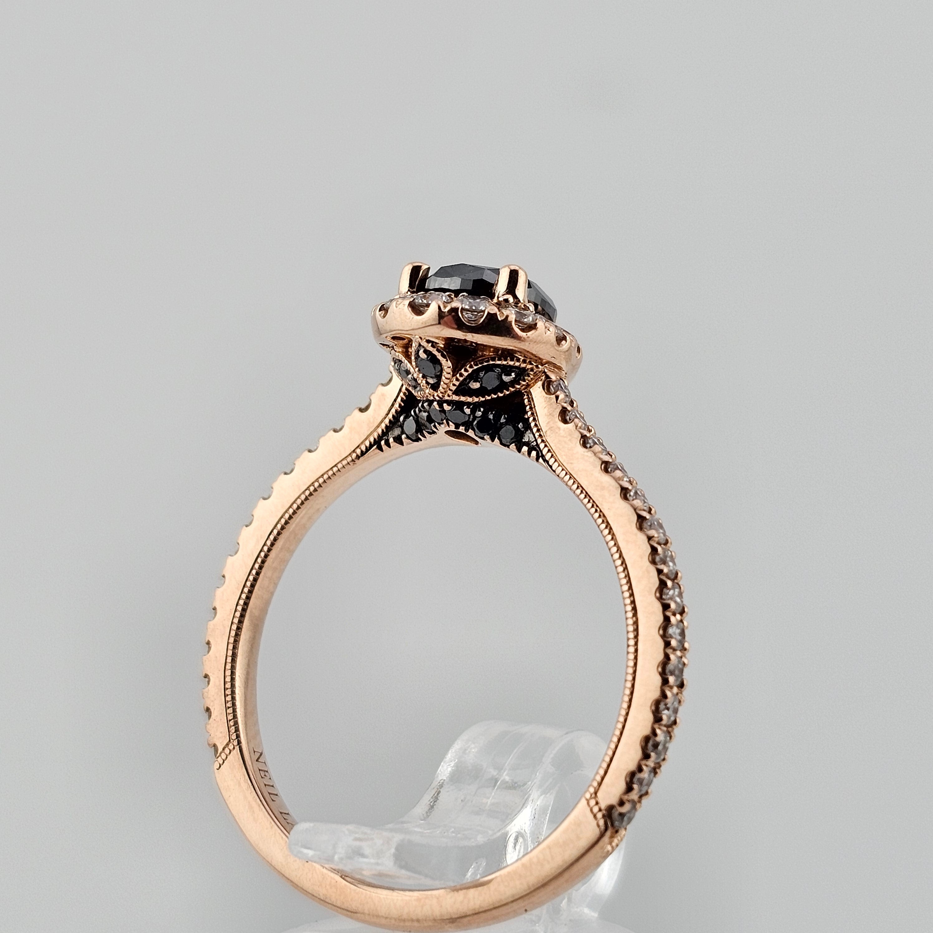 0.72ct Pear Cut Black Diamond Halo Engagement Ring 14k Rose Gold - Size 6.75