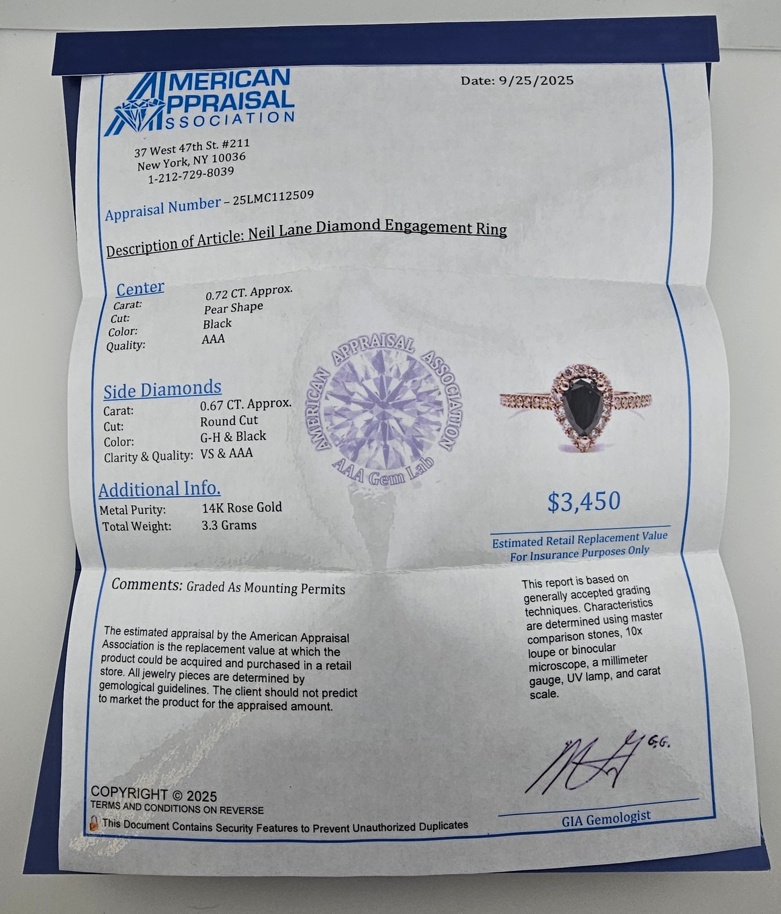 - Appraisal is included with this Ring