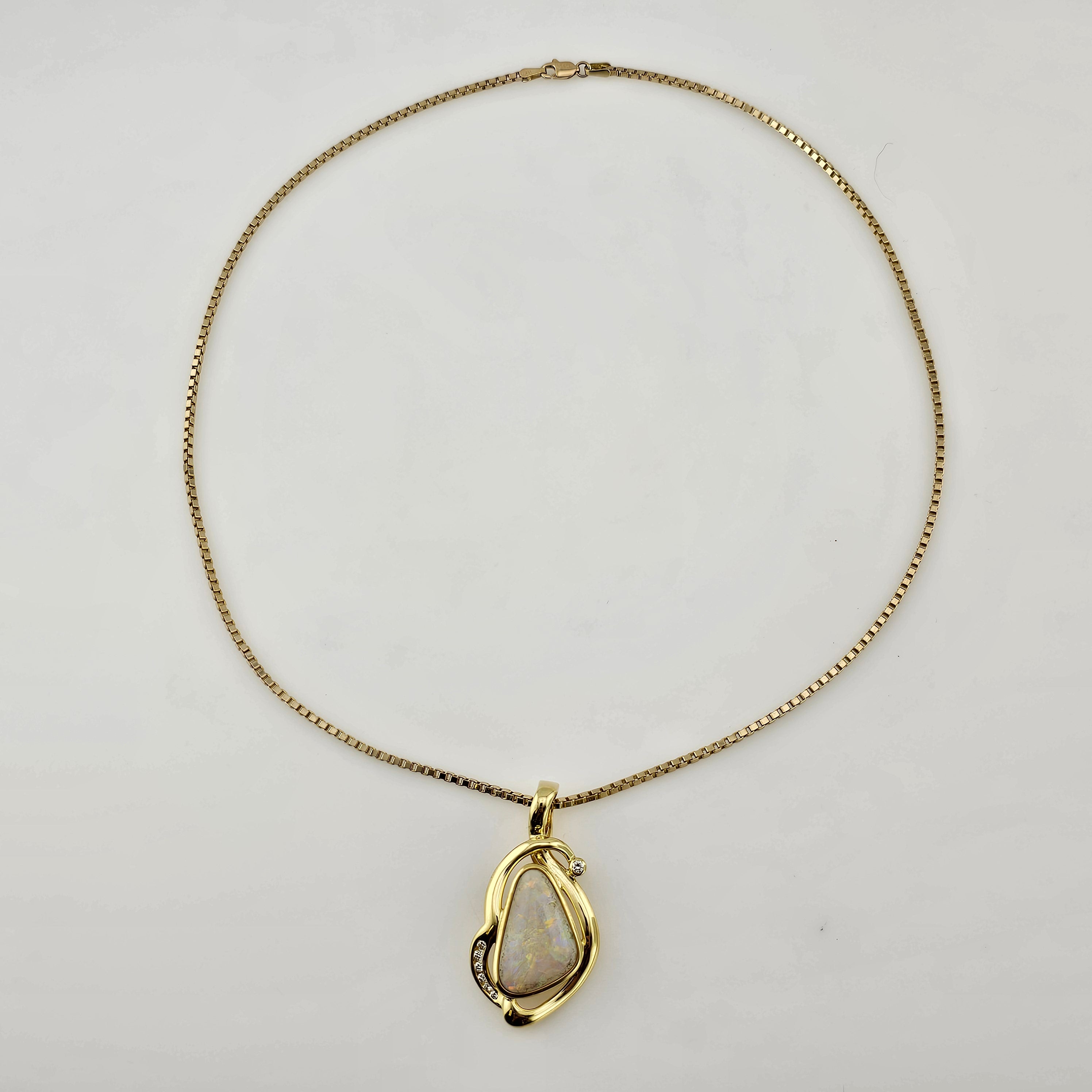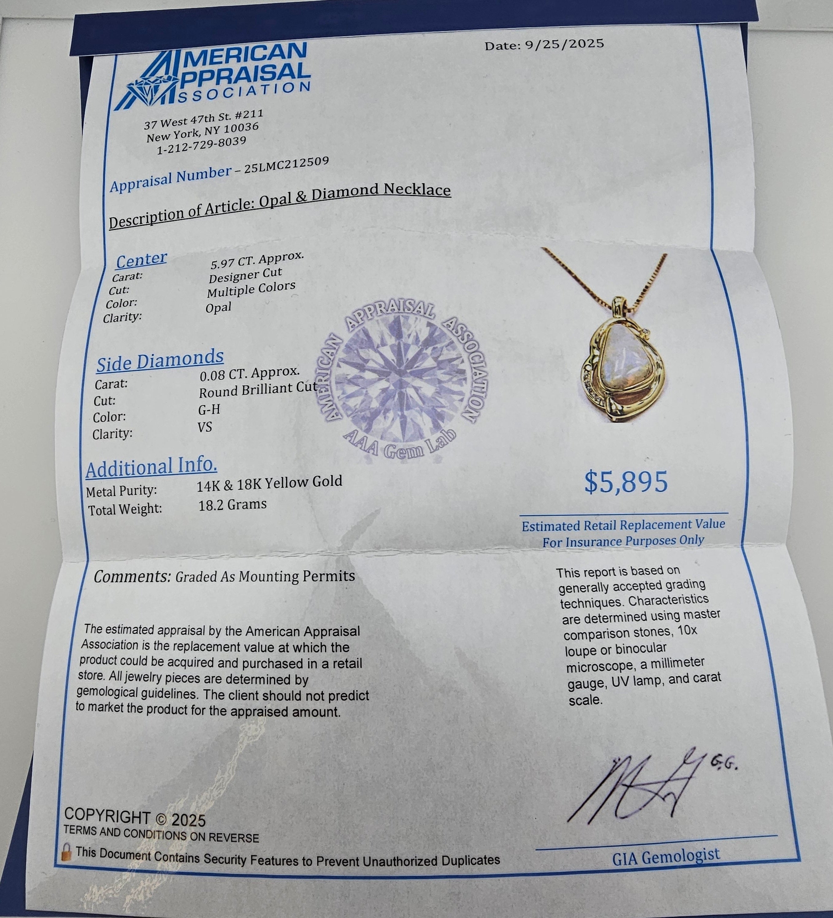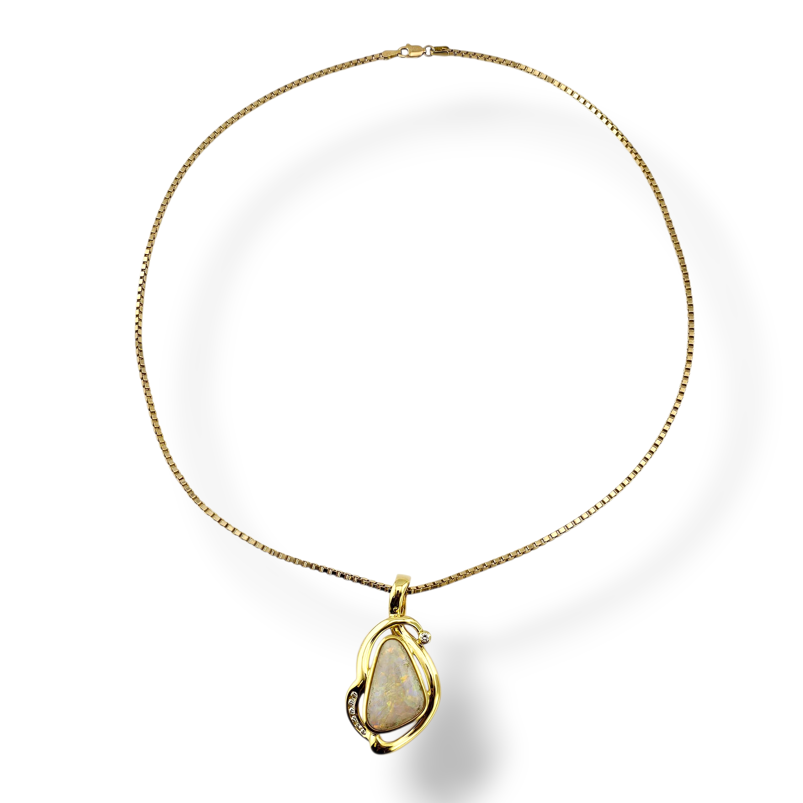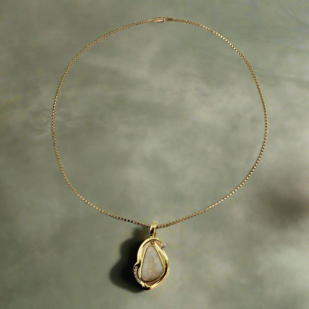 Opal and Diamond Pendant Necklace 14k & 18k Yellow Gold